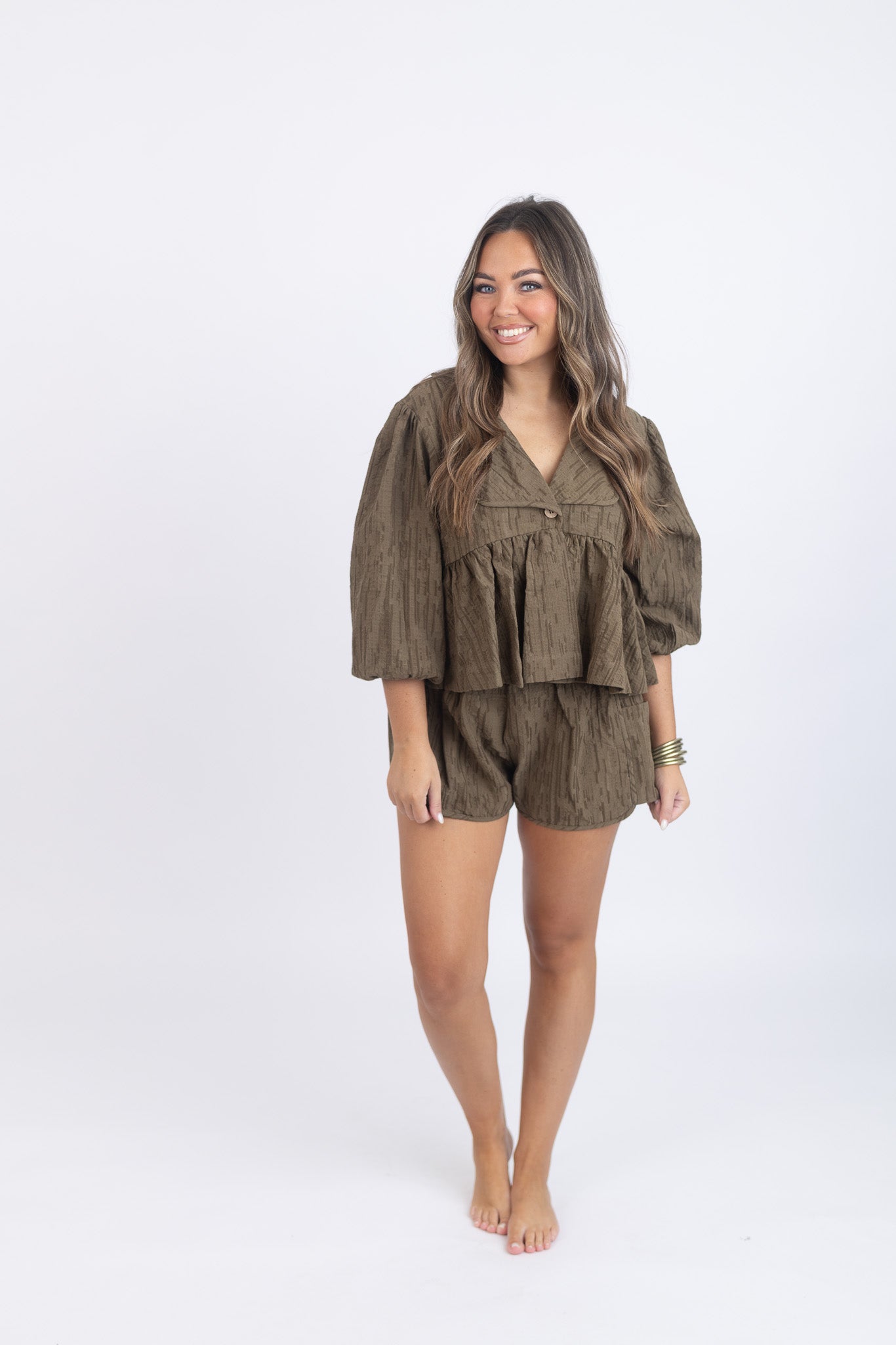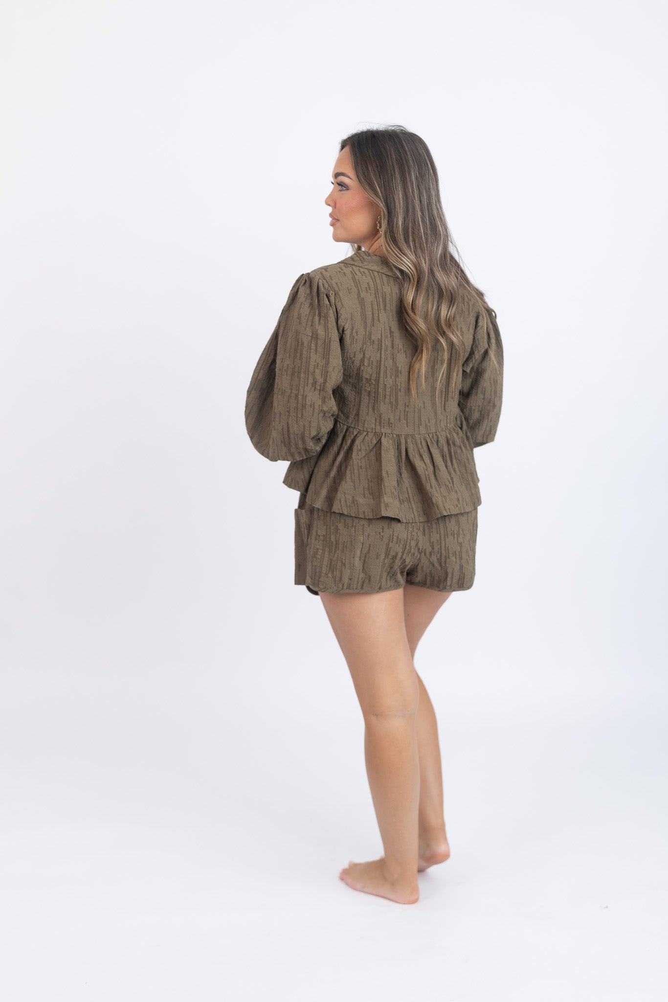 Long Sleeve Olive Short Set